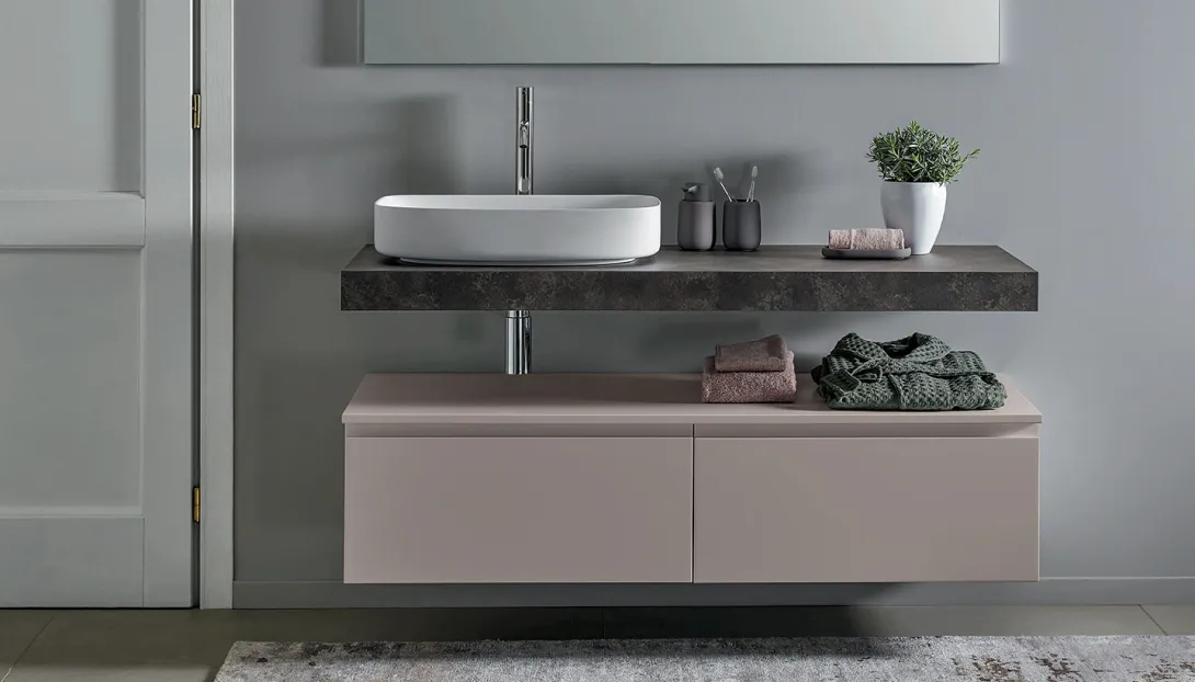 • Kombinierbar mit integrierten Becken, Aufsatzwaschbecken, offenen Elementen und Unterschränken